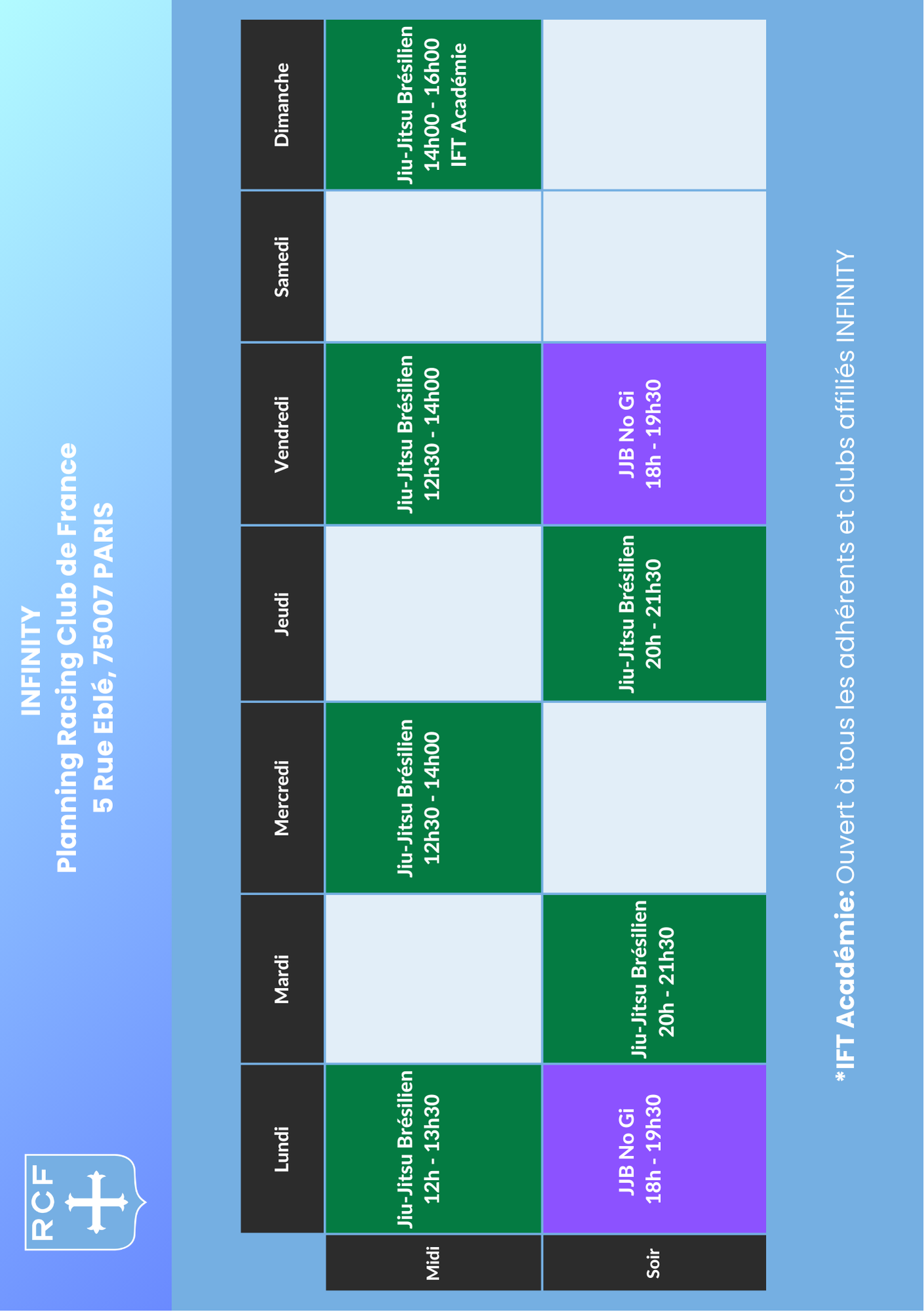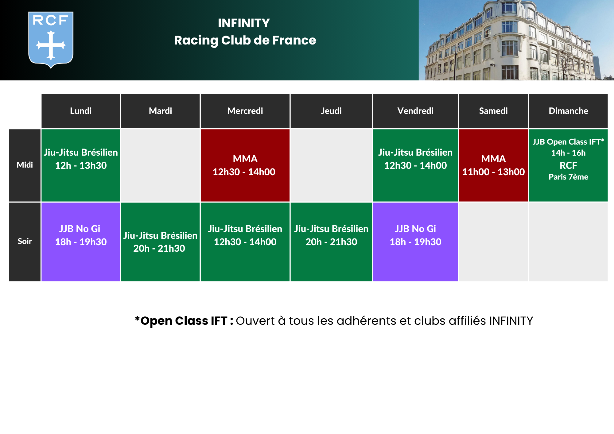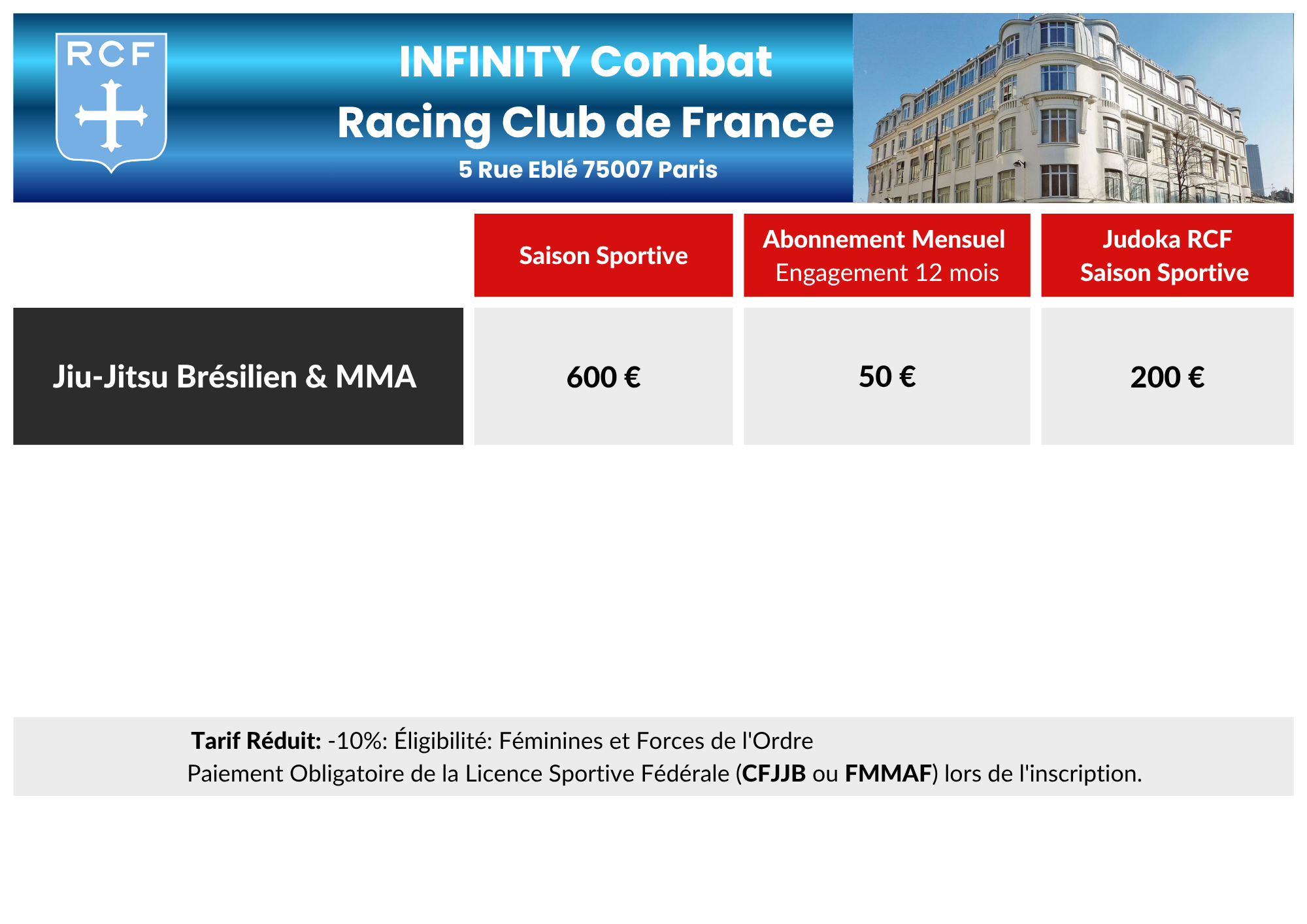 Offre réservée aux femmes, forces de l’ordre et -18 ans inscrits aux cours adultes.